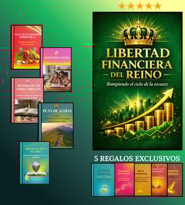Recibirás un ecosistema financiero completo, compuesto por guías prácticas, desafíos de transformación y herramientas bíblicas paso a paso para dominar las finanzas del Reino: